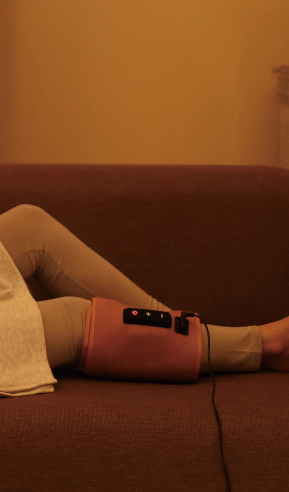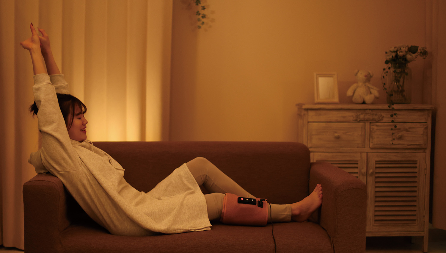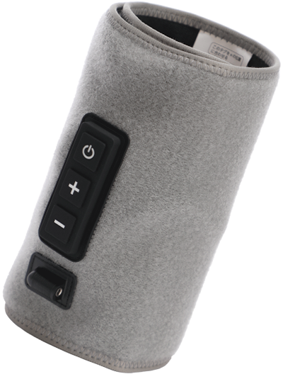 面ファスナーだから足に巻くだけの簡単装着。どなたでも心地よくお使いいただけます。スタートは電源ボタンをポンとワンタッチ、あとはお任せでOK。強弱は[+][-]ボタンで調節可能です。