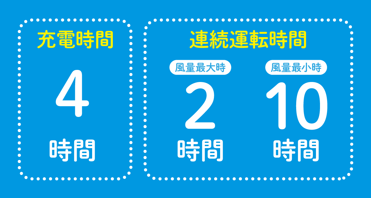 | 使用時間(約) | G:2時間 強:3時間 中:5.5時間 弱:10時間 |