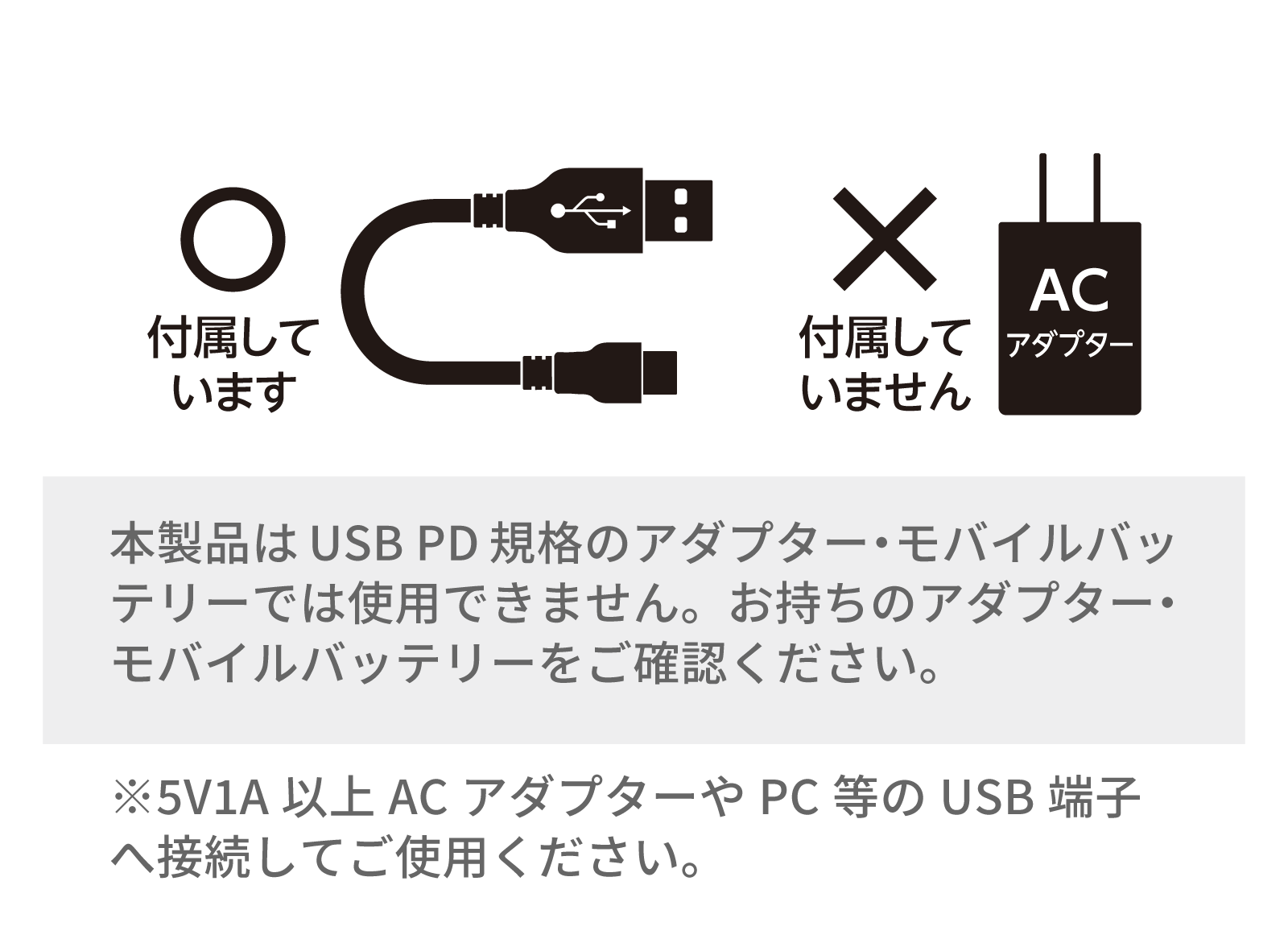 | 付属品 | USBケーブル、保証書付き取扱説明書 |