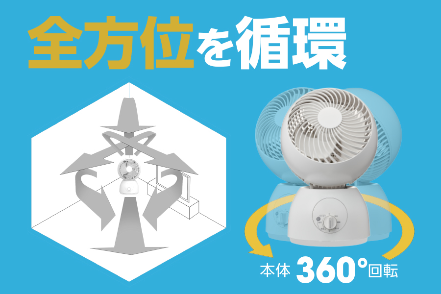 あらゆる方向に風を送ります。