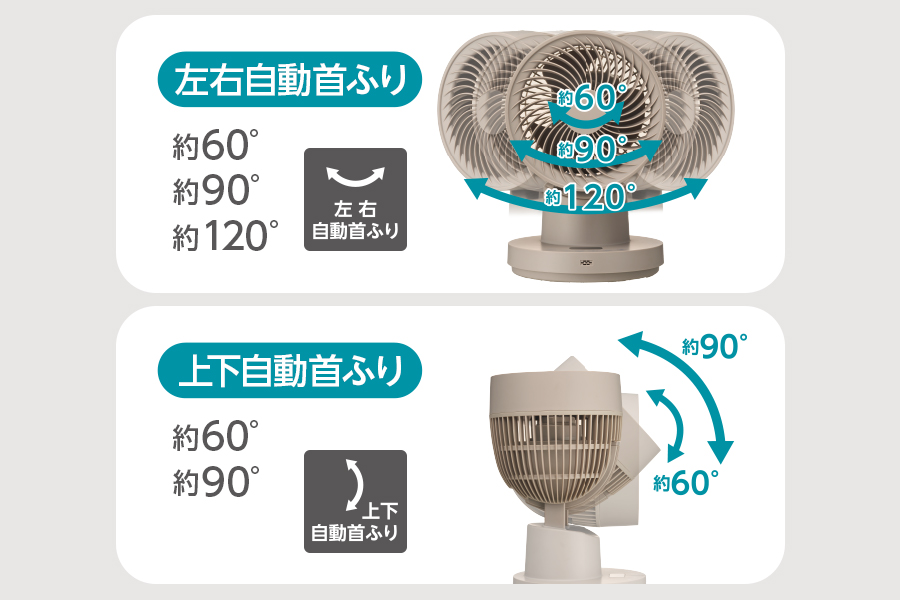 左右:自動首振り 60/90/120度
