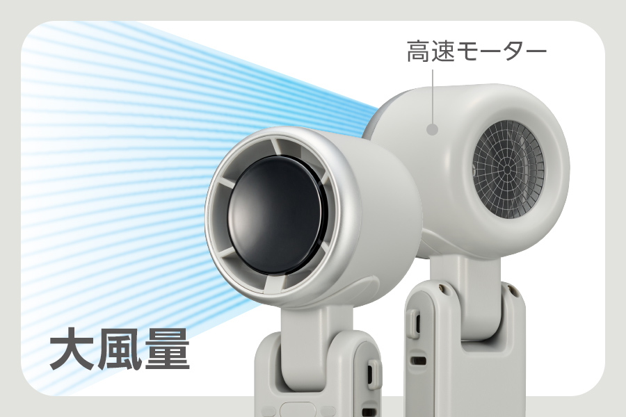 高速モーターによるパワフルな風量で快適に涼める
