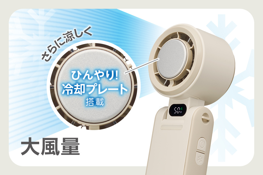 大風量ファンで涼むと同時に直接肌を冷却できる