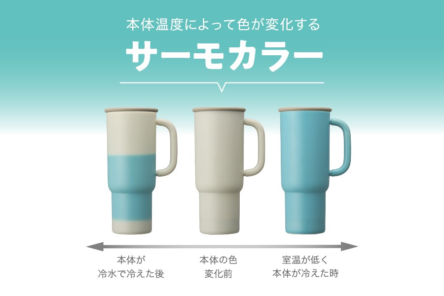 本体の温度によって色が変化する!取手がついて持ち運びラクラク。