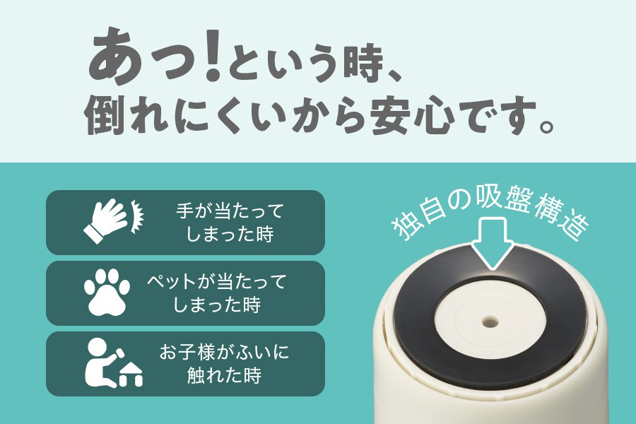 接地面に吸着することで横からの衝撃に強く、倒れにくい