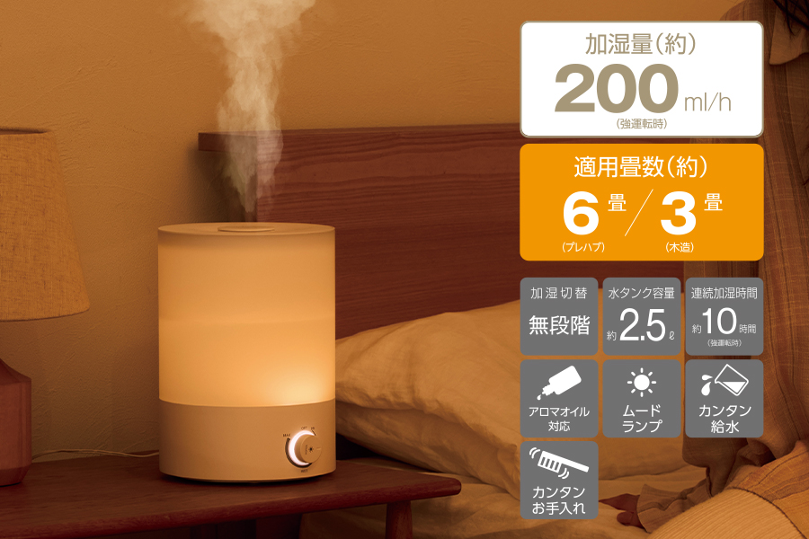 HOME > ラインナップ > 加湿器 > お手入れカンタンアロマ対応超音波式加湿器 KWA-201/NKWA-201