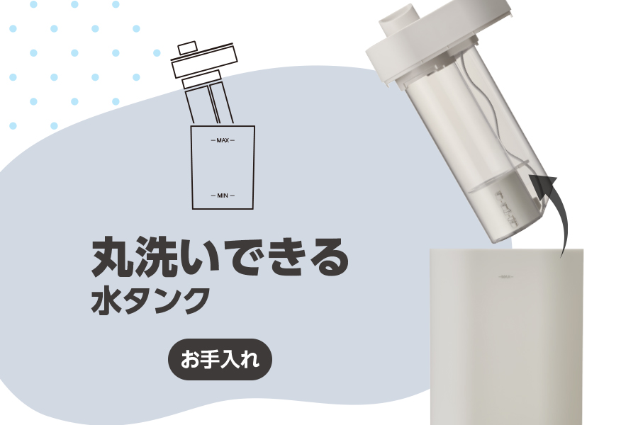 本体部分がまるごと取れて、水タンクが丸洗いできます。