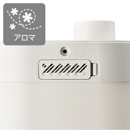 アロマケースが付属しているので、お好みの香りで加湿することができる。