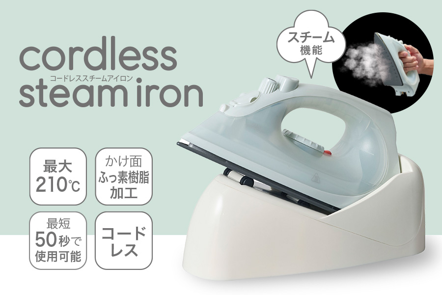 スチーム機能でしわ伸ばし、コードレスで小回りの利くアイロン