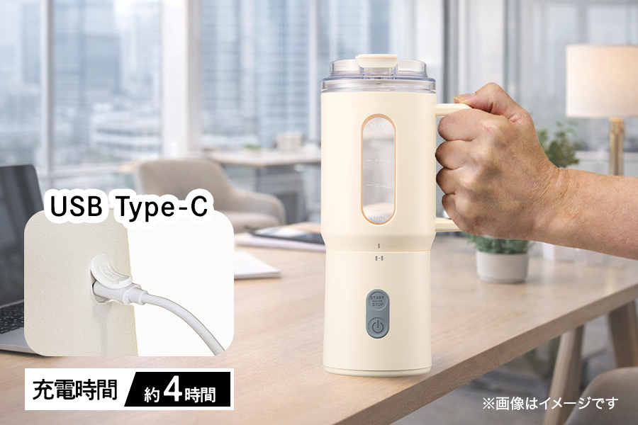 充電時間は約4時間、満充電時に約11回の攪拌が可能