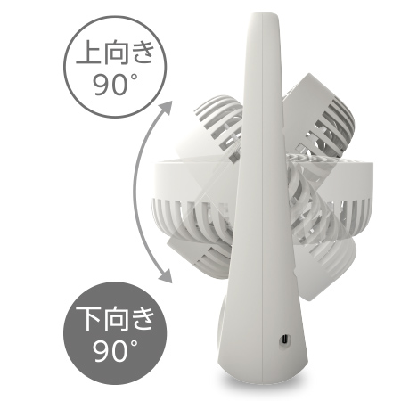 手動で上向き90度、下向き90度まで角度を無段階で調節可能
