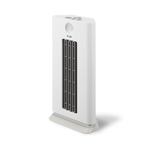 部屋のスミにすっきり収まる独自形状で、脱衣所やトイレ等狭いスペースを暖かく。